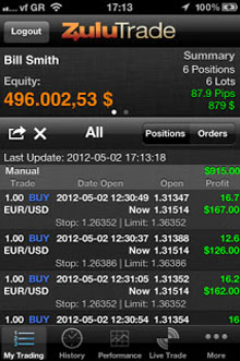 iPad / iPhone ZuluTrade Application Features: