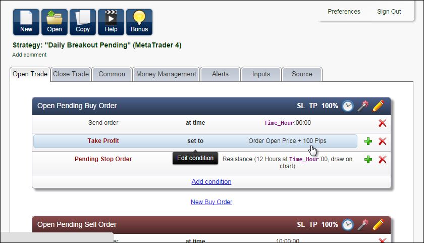 Tip: Use the magic button to create the opposite conditions for a selling order.
